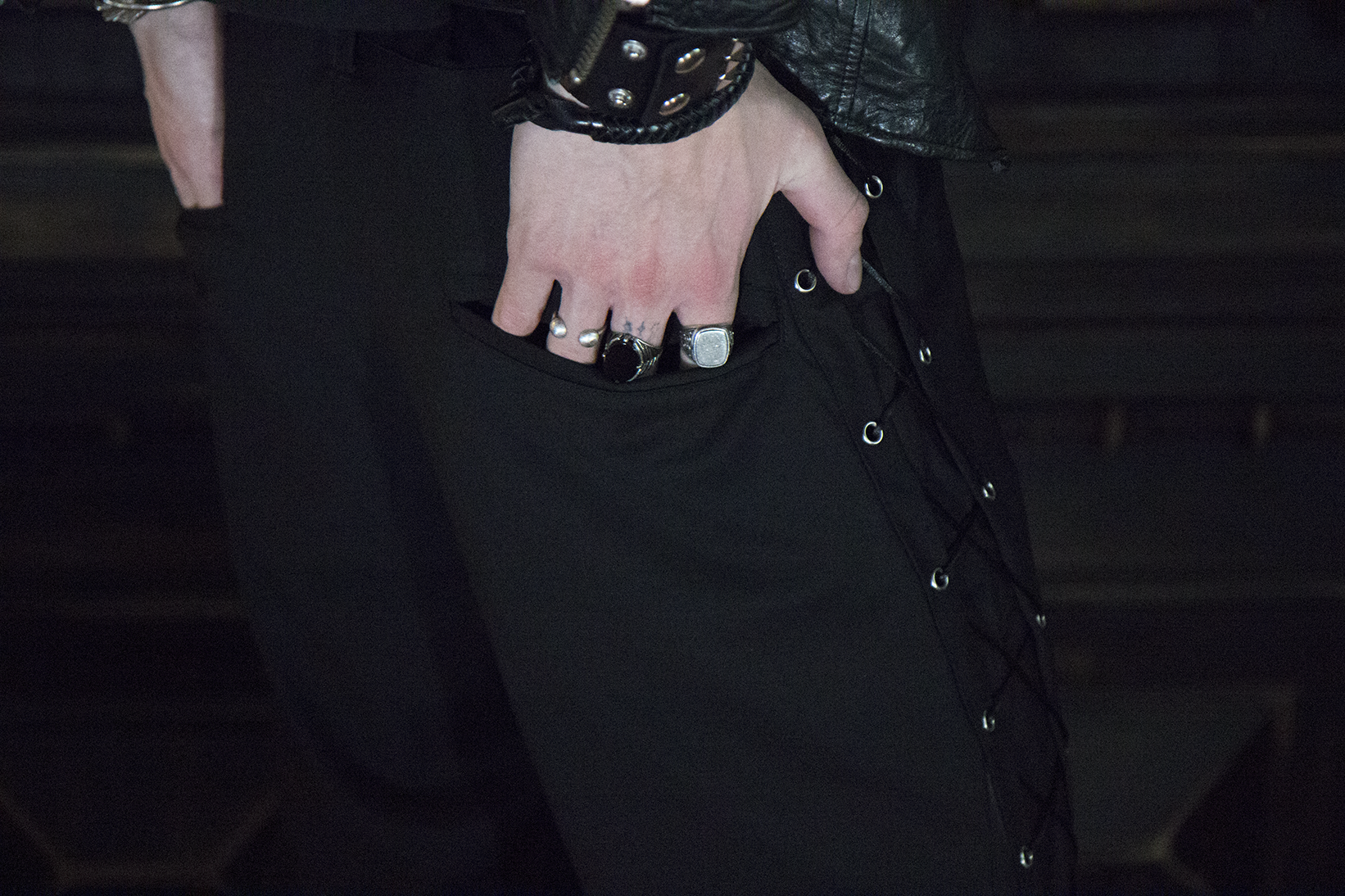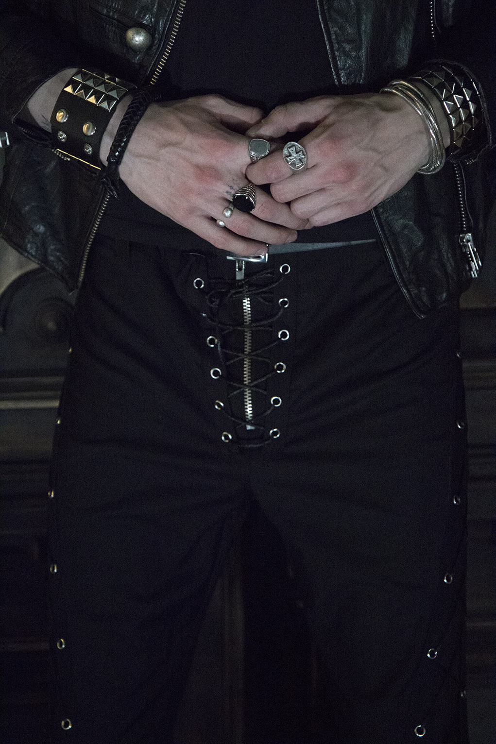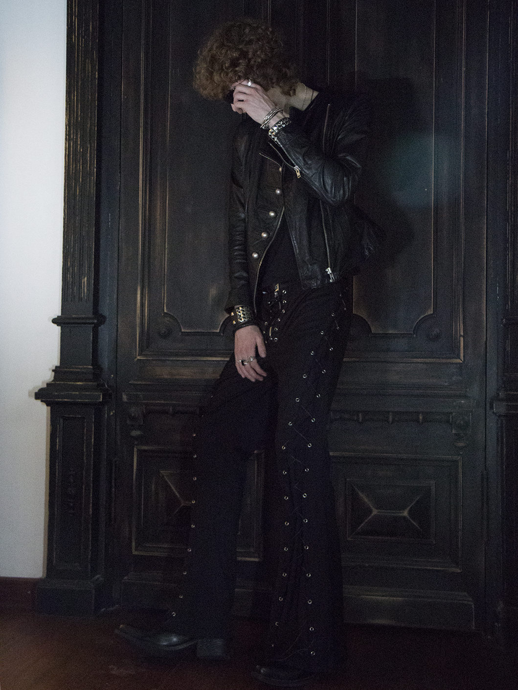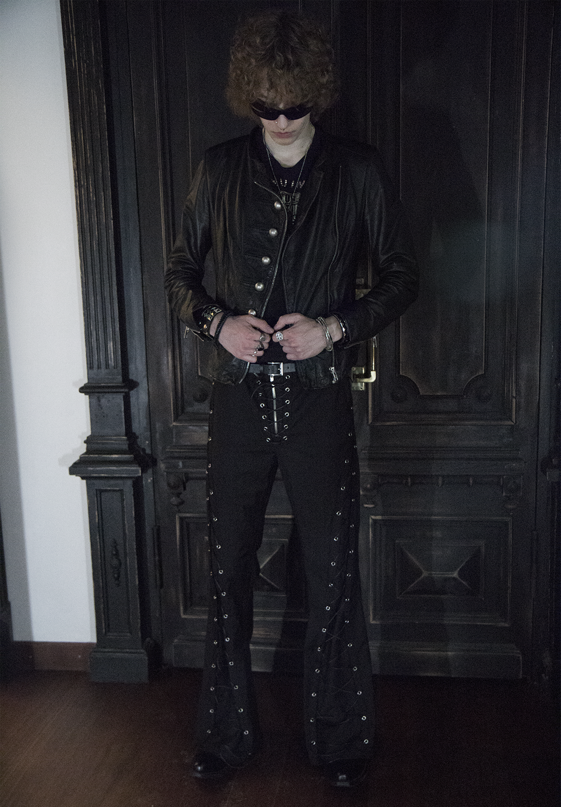 Брюки мужские Flare of void - Клёш пустоты Шнуровка идёт строго вниз и теряется в расширенном к низу силуэте, который напоминает пустоту - это строгая форма, растворяющаяся в тишине