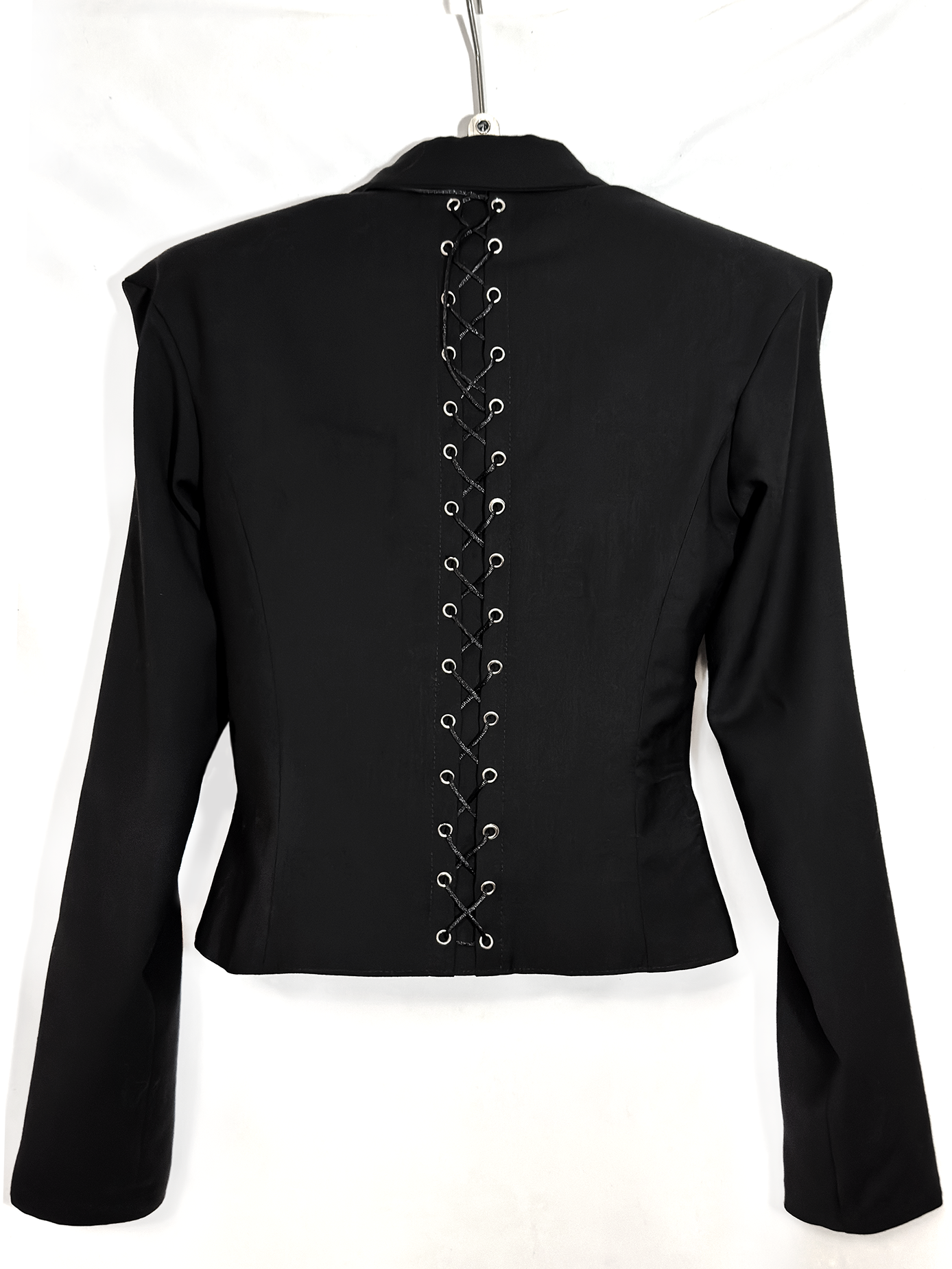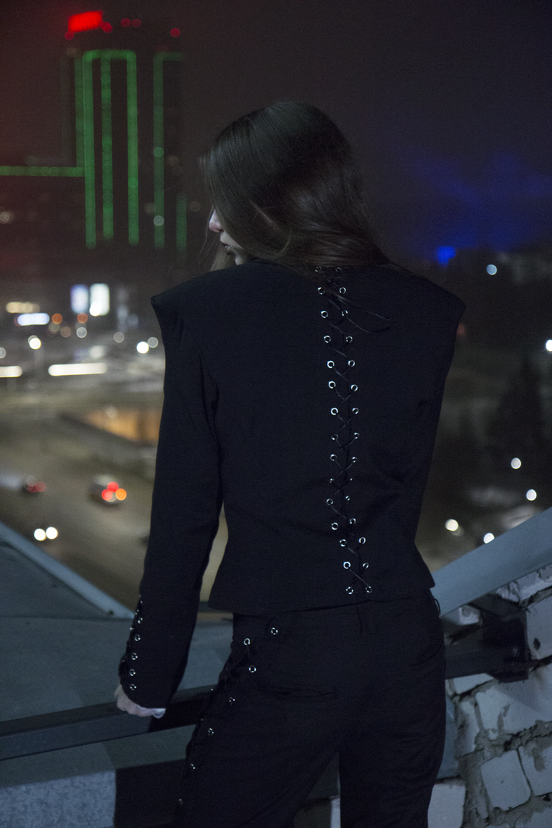 Жакет женский Angle of Power - Угол силы Острые плечи образуют жесткий угол и строгий силуэт, а с ними контрастирует приталенный силуэт с шнуровкой на спине. Это символизирует силу и строгость, затянутые в нежный корсет, - и не боящиеся своей остроты. Первый и главный айтем коллекции На каждый жакет уходит около 10 часов ручной работы